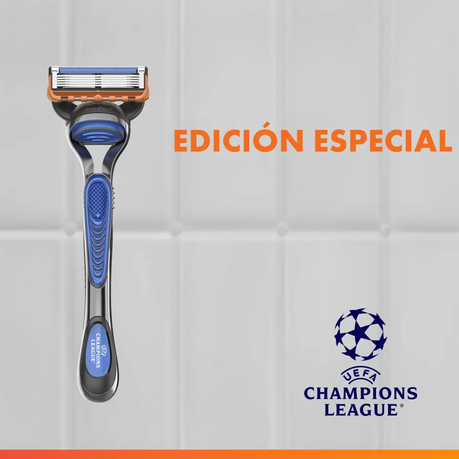 Maquinilla de afeitar Fusion5 UEFA Champions League con un mango y un recambio