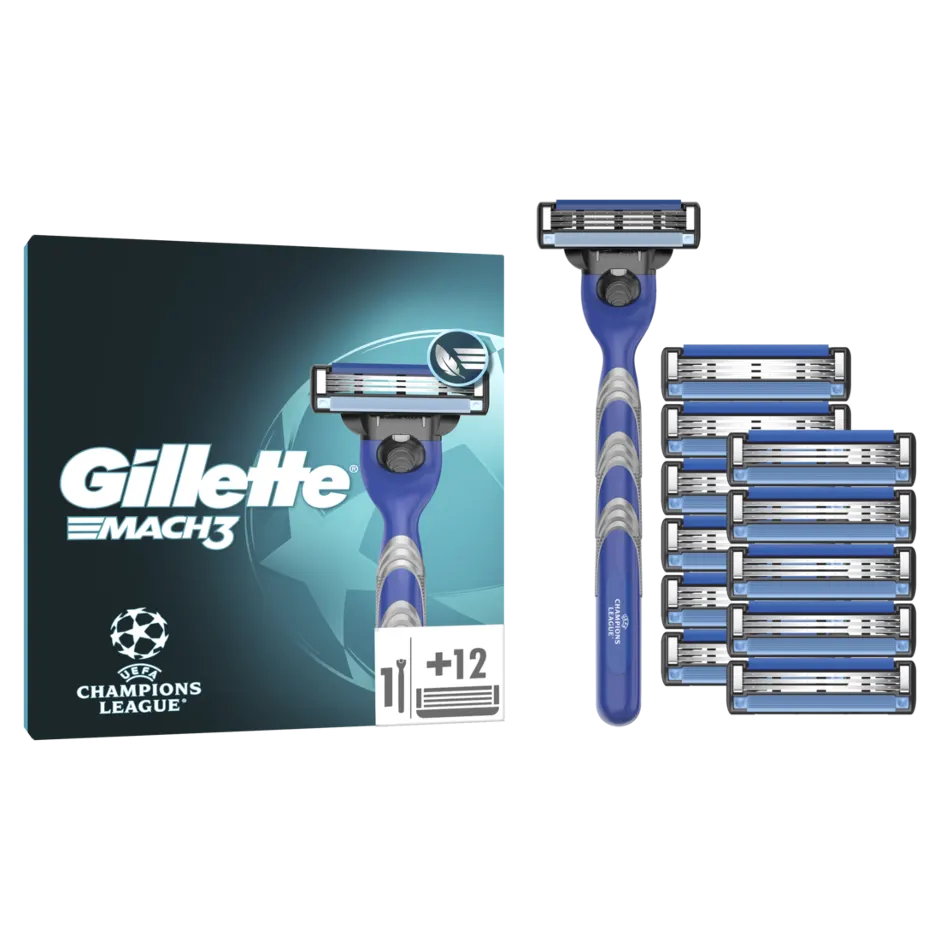 Maquinilla de afeitar Mach3 de la Champions League con un mango y 12 recambios